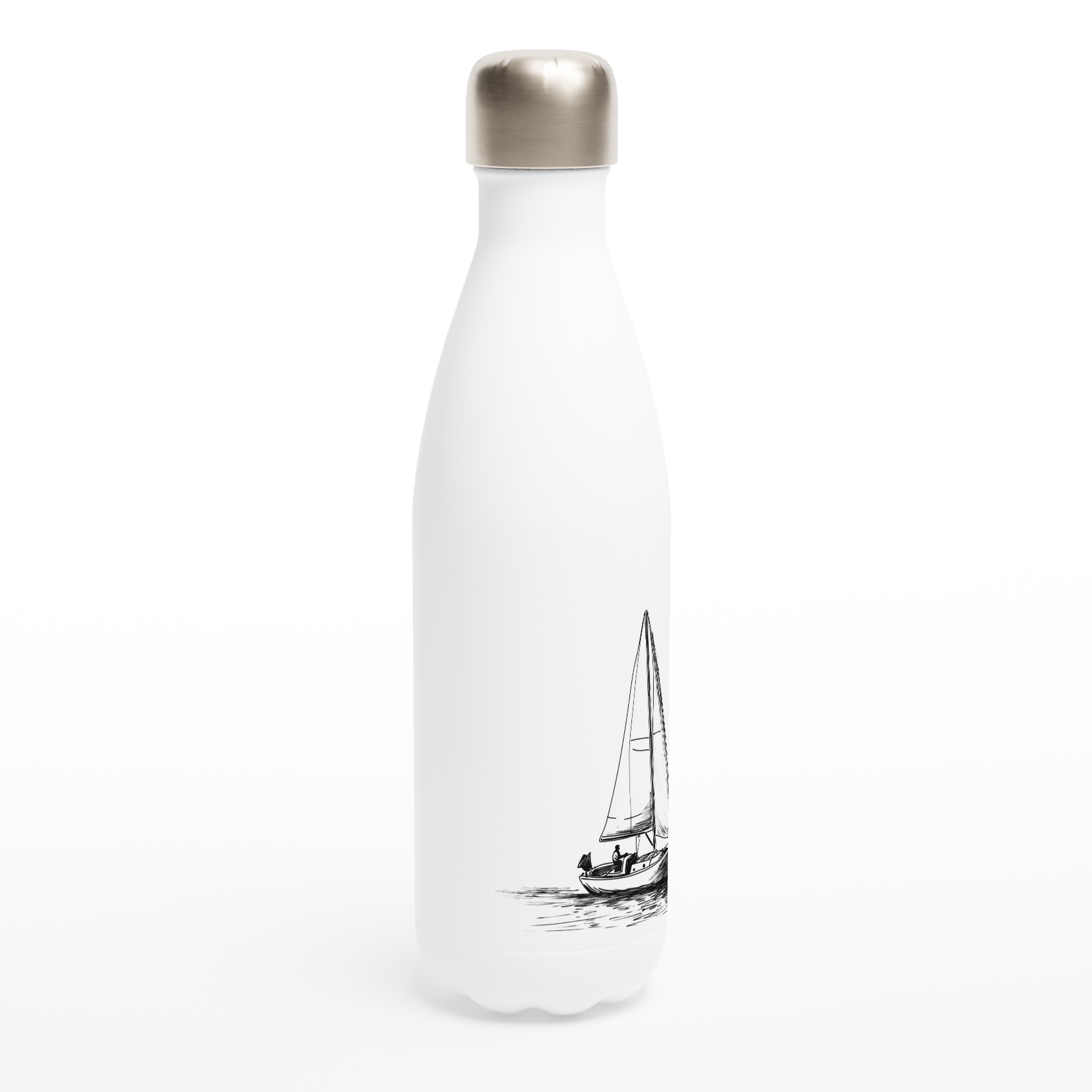 Edelstahl-Wasserflasche „Solo-Segler“ weiß