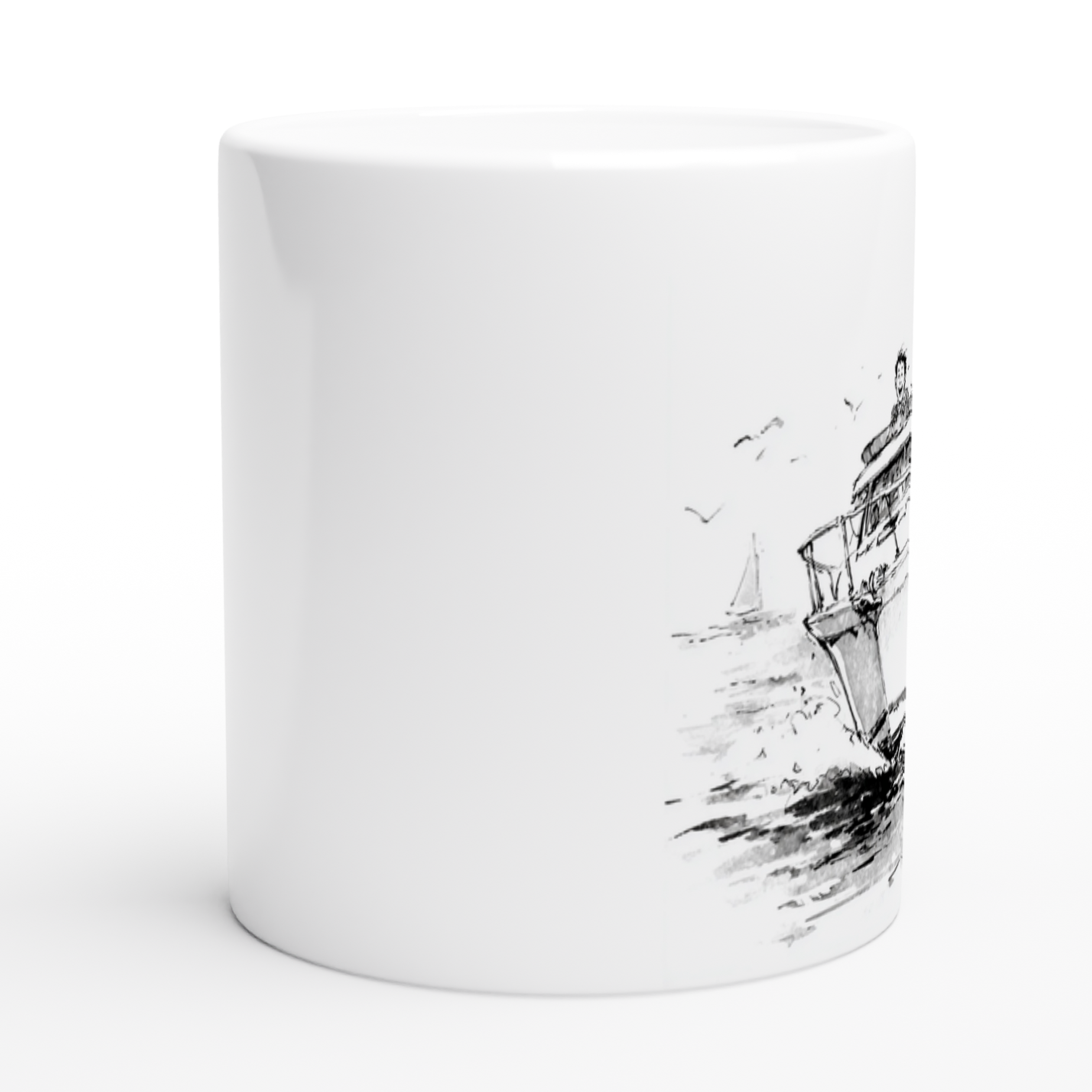 Momente an Bord. Die glänzend weiße Oberfläche bringt den Druck besonders