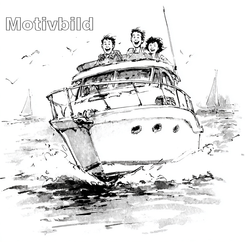 Momente an Bord. Die glänzend weiße Oberfläche bringt den Druck besonders